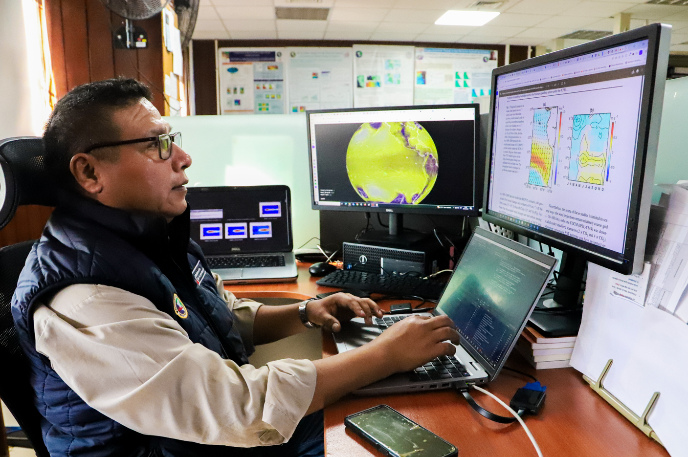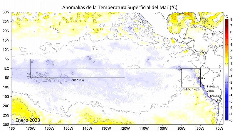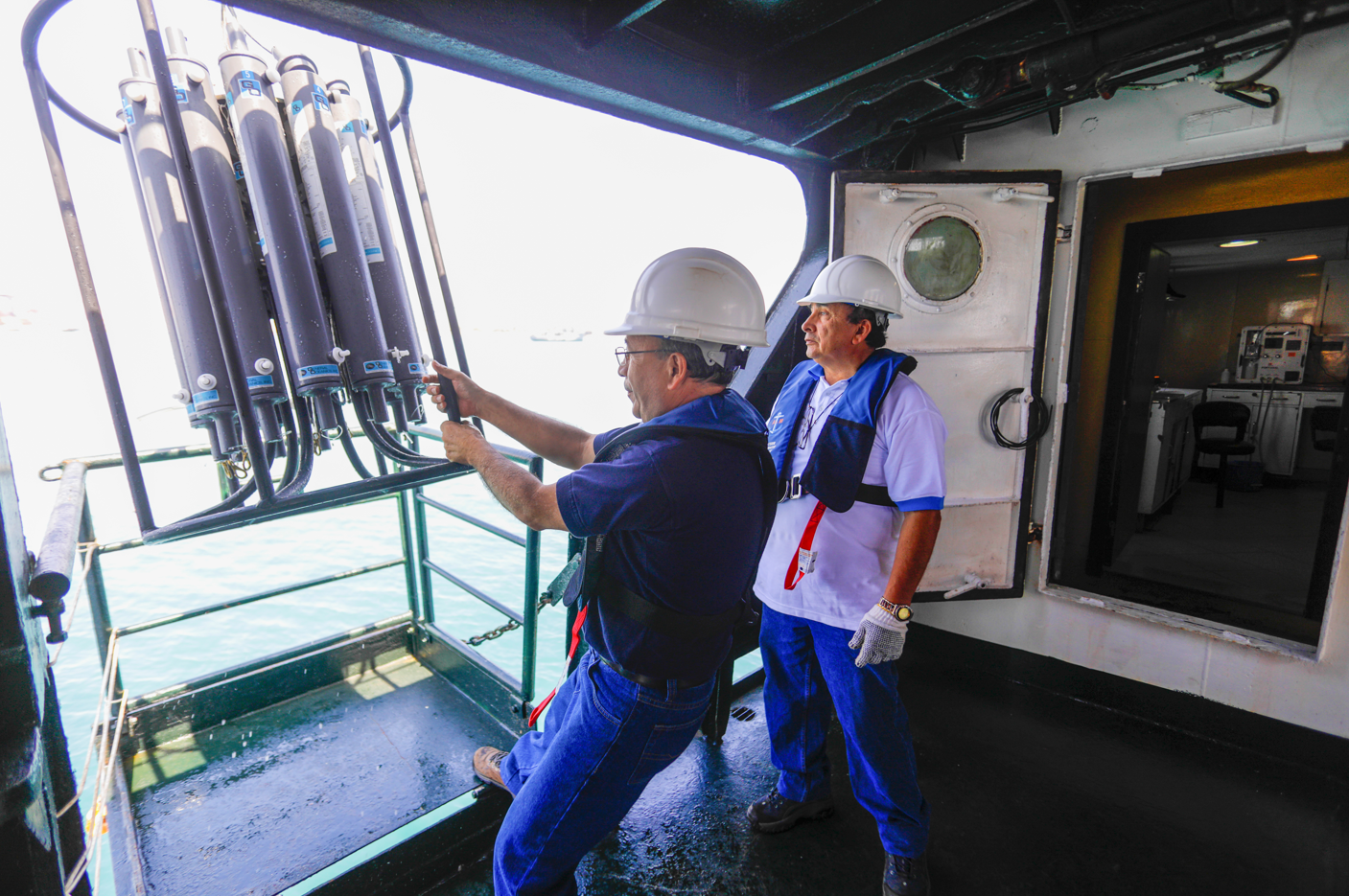 Las condiciones oceanográficas del mar peruano se monitorean mediante una variedad de equipos con apoyo de plataformas para el registro de datos físicos como para la colección de muestras de agua para análisis químicos, biológicos y de los recursos pesqueros.